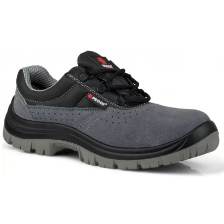Wygodne półbuty robocze wykonane z naturalnej skóry welurowej. Posiadają dodatkowe otwory, które pomagają zapewnić cyrkulację powietrza. Doskonale sprawdzą się w ciepłe dni.